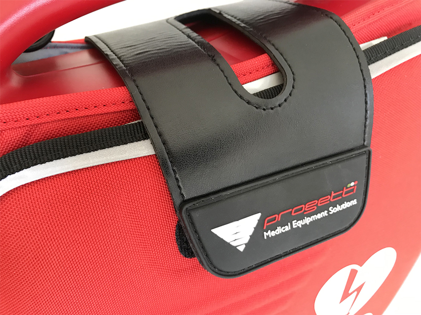 • Εργονομική Σχεδίαση Υψηλής Ορατότητας: Η τσάντα διαθέτει έναν έντονο και αναγνωρίσιμο χρωματισμό που την καθιστά άμεσα εντοπίσιμη ακόμα και σε περιβάλλοντα με χαμηλό φωτισμό ή σε συνθήκες έντονου συνωστισμού, διευκολύνοντας τον γρήγορο εντοπισμό του απινιδωτή.
