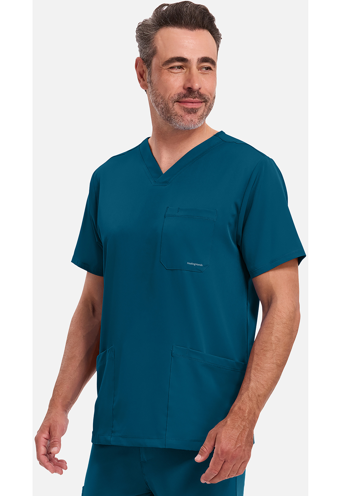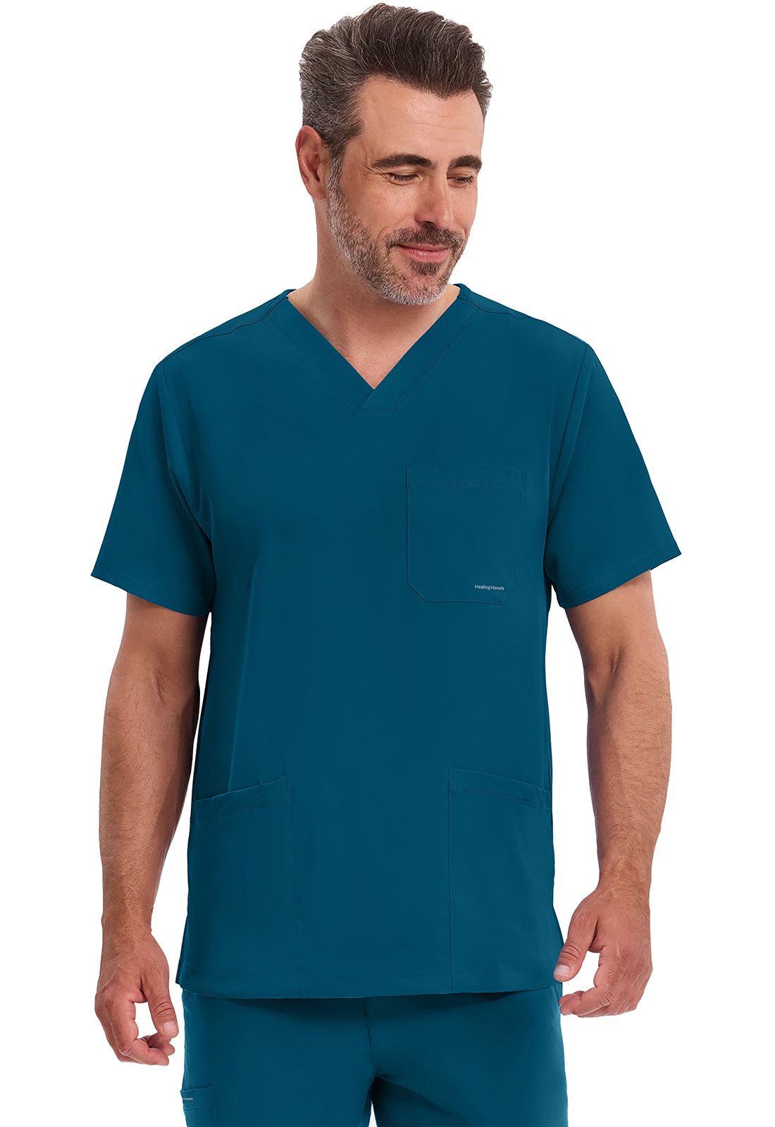 Σχεδιασμένη για να ανταποκρίνεται στις καθημερινές και απαιτητικές ανάγκες των επαγγελματιών υγείας, η ανδρική ιατρική μπλούζα (scrub top) "Mathew" της Healing Hands αποτελεί την επιτομή της λειτουργικότητας. Συνδυάζει την εξαιρετική άνεση με το μοντέρνο στυλ και την ανθεκτικότητα που διαρκεί στο χρόνο, προσφέροντας μια επαγγελματική εμφάνιση που δεν θυσιάζει την ελευθερία κινήσεων.