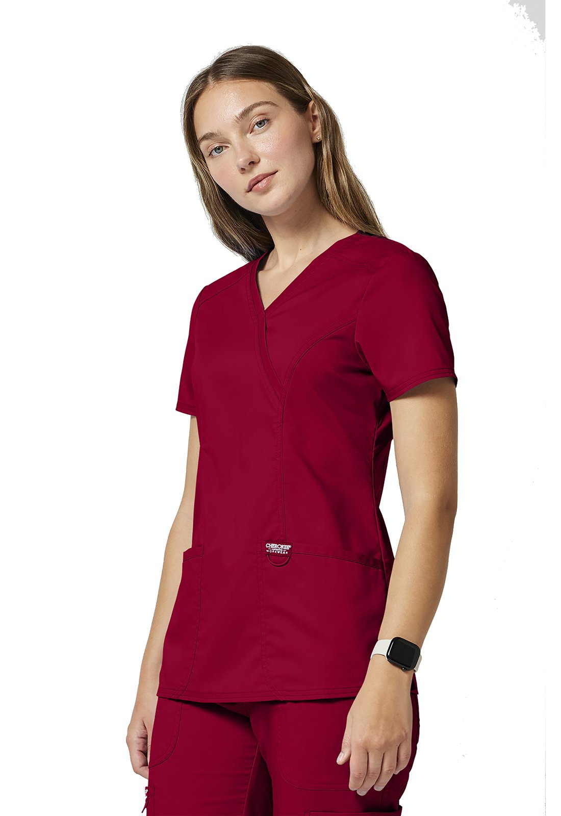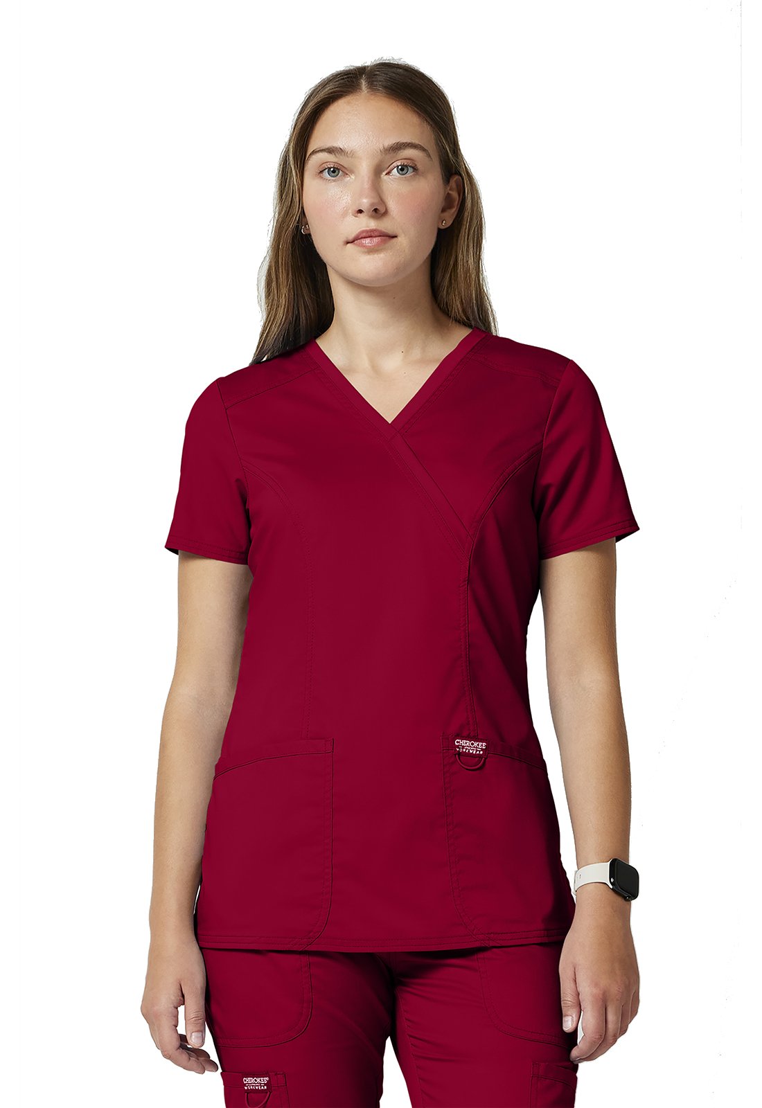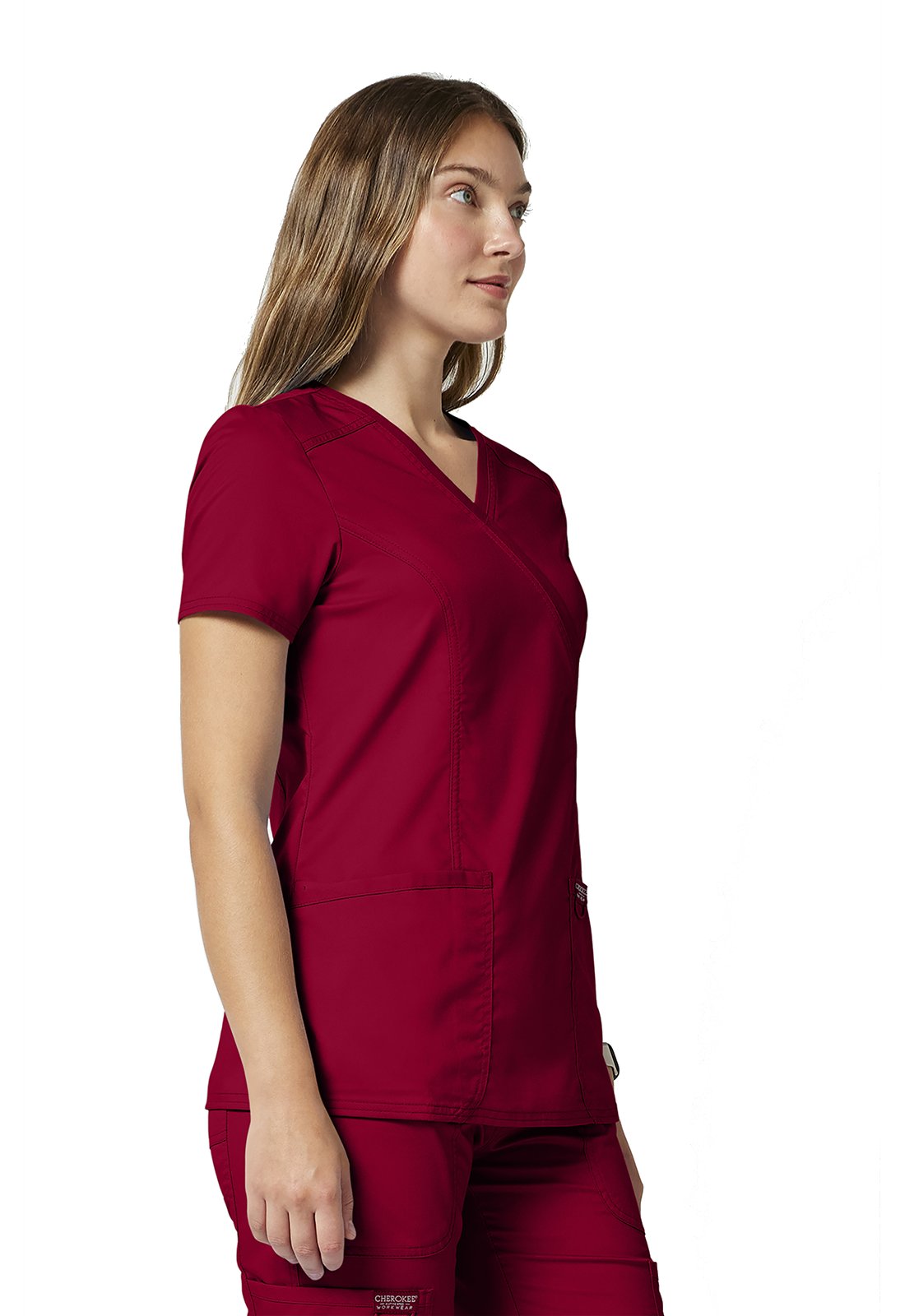 Ανανεώστε την επαγγελματική σας εμφάνιση με την άνετη και κομψή γυναικεία ιατρική μπλούζα Revolution by Cherokee Workwear Mock Wrap. Σχεδιασμένη με γνώμονα την άνεση και τη λειτουργικότητα, αυτή η μπλούζα διαθέτει λαιμόκοψη "crossover mock wrap" και κολακευτικές πένσες μπροστά και πίσω που προσφέρουν μια σύγχρονη και θηλυκή σιλουέτα. Η απουσία ετικέτας στο λαιμό ("tagless neckline") εξασφαλίζει άνεση όλη μέρα, ενώ η θηλιά με ελαστικό κορδόνι για το σήμα ή τα κλειδιά προσθέτει πρακτικότητα.
