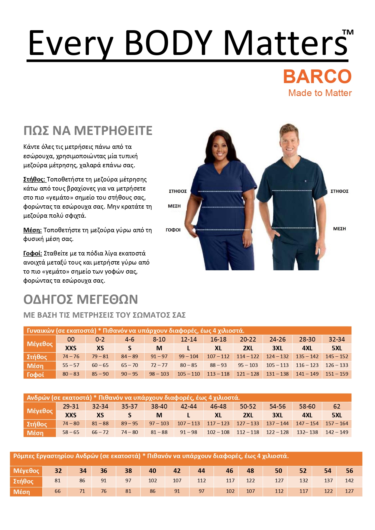 Διατίθεται σε μεγέθη XS, S, M, L, XL, 2XL, στη βασική παλέτα χρωμάτων. Οι Ιατρικές – Νοσηλευτικές Στολές της κολεξιόν Essentials, θεωρούνται ως εξαιρετική επιλογή, λόγω της προσιτής τους τιμής.