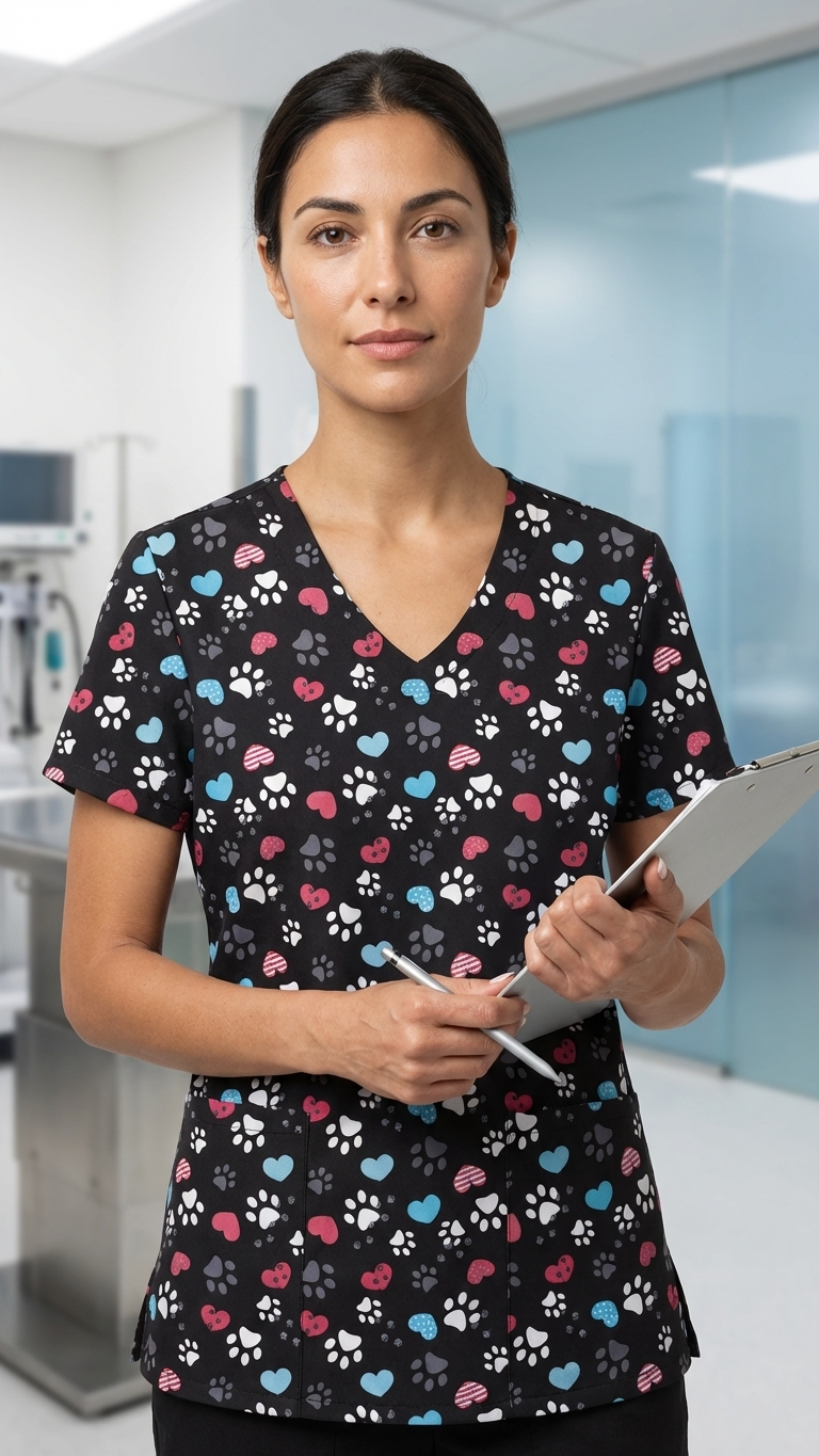 Μπλούζα Γυναικεία Yγειονομικών Diamond Neck ZOE+CHLOE Stay Pawsitive