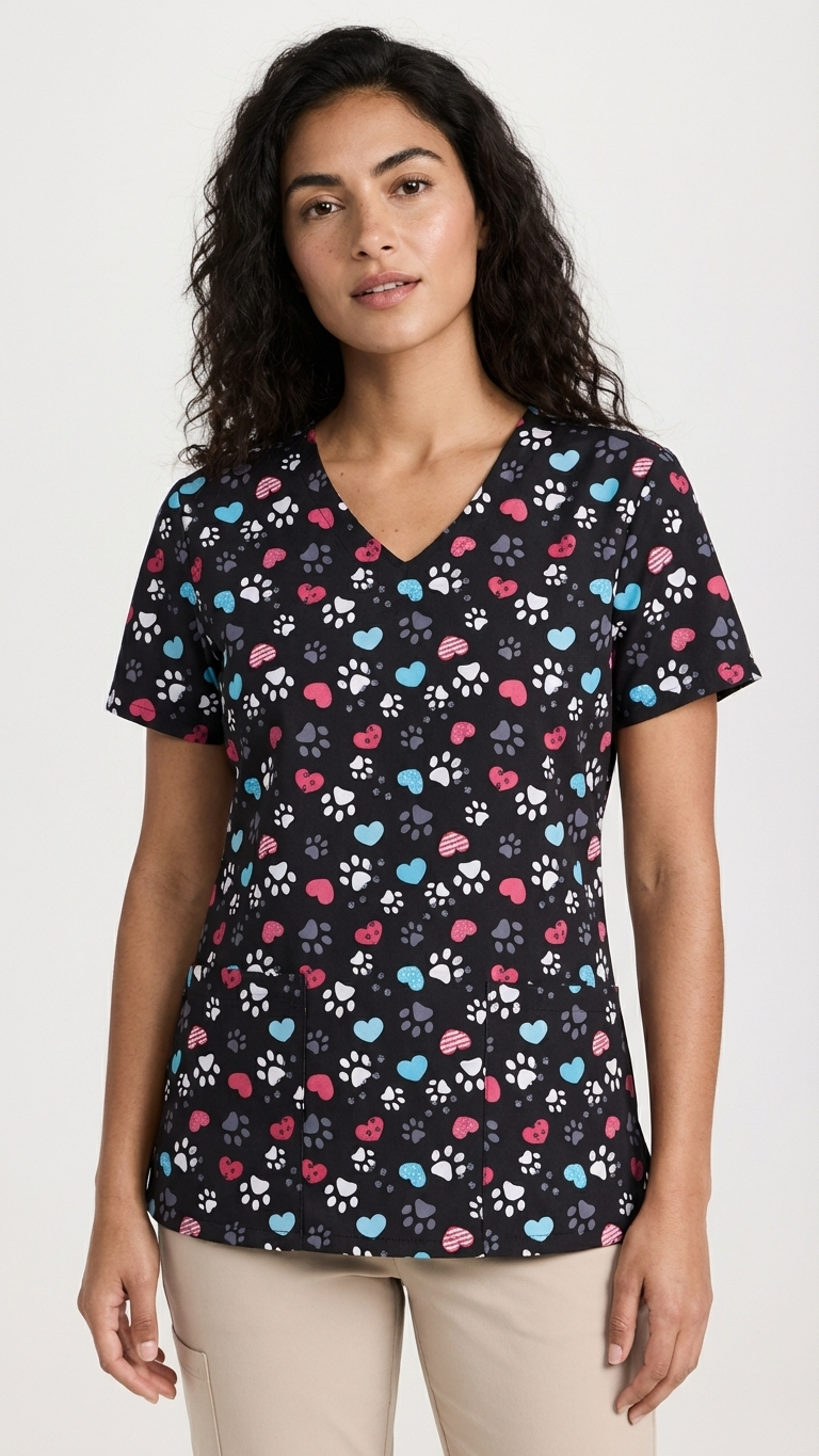 Η χαρούμενη αυτή γυναικεία μπλούζα, μοντέλο Stay Pawsitive, της εξειδικευμένης εταιρείας στις εμπριμέ (print) στολές Zoe+Chloe®, θα σας εντυπωσιάσει με τη χαρούμενη Floral σύνθεσή της, αλλάζοντας τη διάθεσή σας.