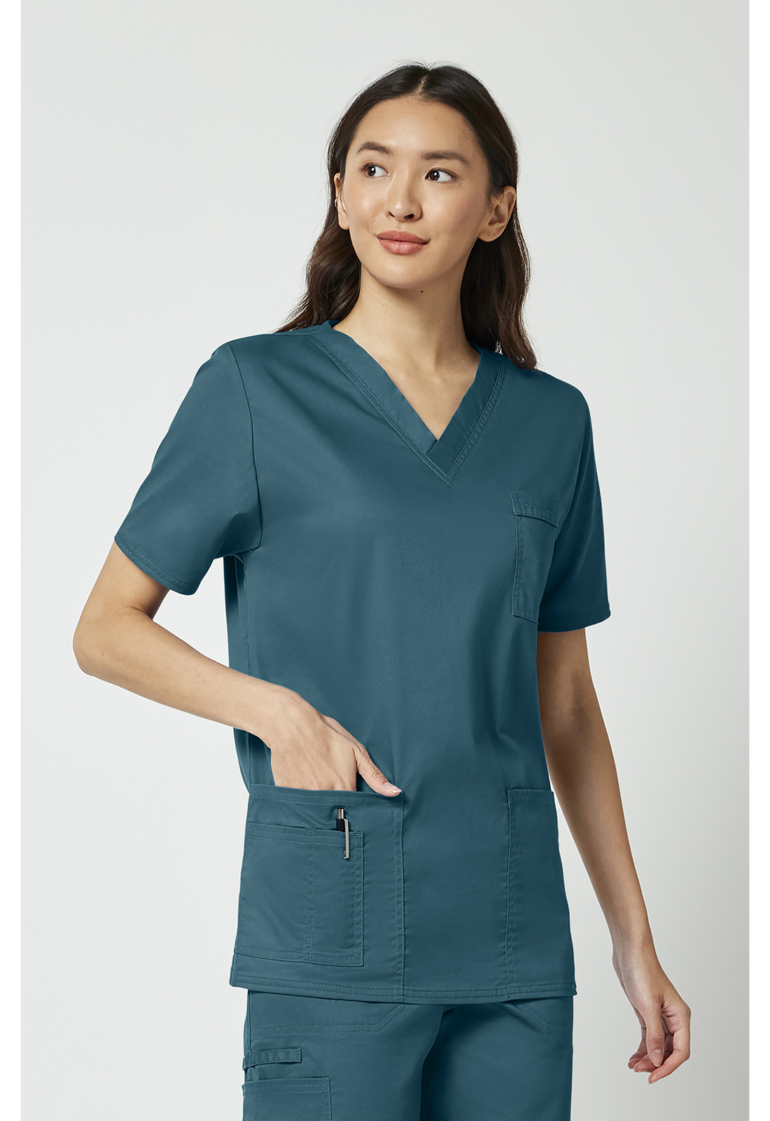 Η Unisex ιατρική μπλούζα Cherokee Workwear Core Stretch έχει σχεδιαστεί για να καλύψει τις αυξημένες απαιτήσεις των επαγγελματιών υγείας που αναζητούν έναν συνδυασμό κλασικής εφαρμογής και σύγχρονης ελαστικότητας. Στο έντονο κλινικό περιβάλλον, η ανάγκη για ένα ένδυμα που προσφέρει ελευθερία κινήσεων και ταυτόχρονα εξαιρετική αντοχή στις συχνές πλύσεις είναι πρωταρχική. Αυτή η μπλούζα προσφέρει την ιδανική ισορροπία μεταξύ επαγγελματικής εμφάνισης και λειτουργικής άνεσης, εξασφαλίζοντας σταθερή απόδοση κατά τη διάρκεια των πιο απαιτητικών βαρδιών.