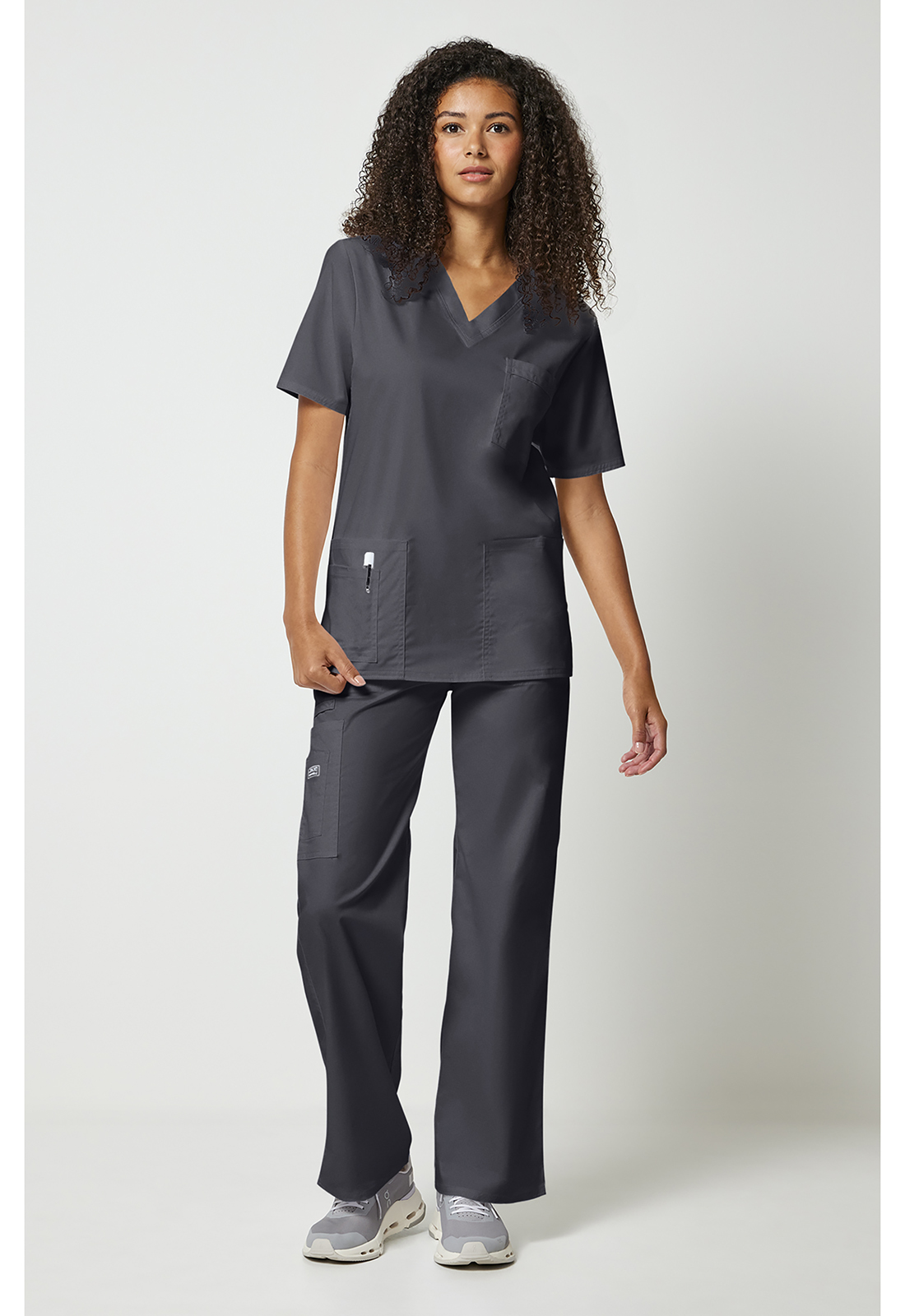 Η σειρά Core Stretch της Cherokee ενσωματώνει την τεχνολογία 2-Way Stretch, προσφέροντας ελαστικότητα δύο κατευθύνσεων που ακολουθεί τις κινήσεις του σώματος χωρίς να χάνει τη φόρμα της. Η υφασμάτινη σύνθεση από βαμβάκι, πολυεστέρα και spandex εξασφαλίζει μια εξαιρετικά απαλή υφή, η οποία παραμένει διαπνέουσα, εμποδίζοντας την εφίδρωση. Η ενισχυμένη διπλή ραφή σε καίρια σημεία αυξάνει τη δομική ακεραιότητα του ενδύματος, καθιστώντας το μία από τις πιο ανθεκτικές επιλογές στην παγκόσμια αγορά ιατρικού ρουχισμού.