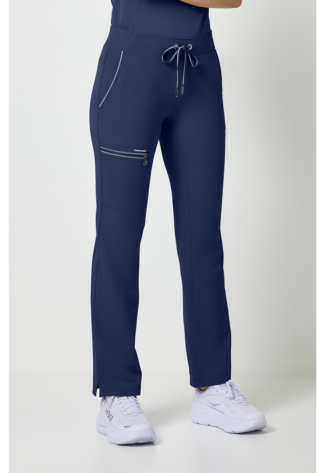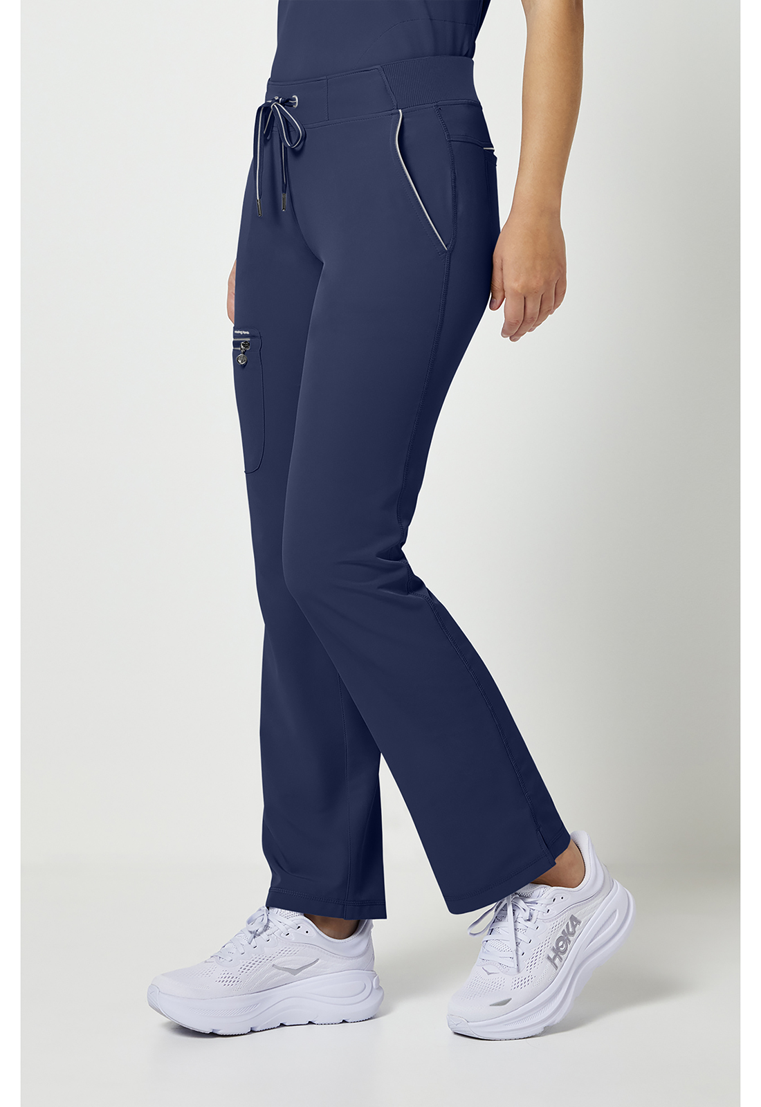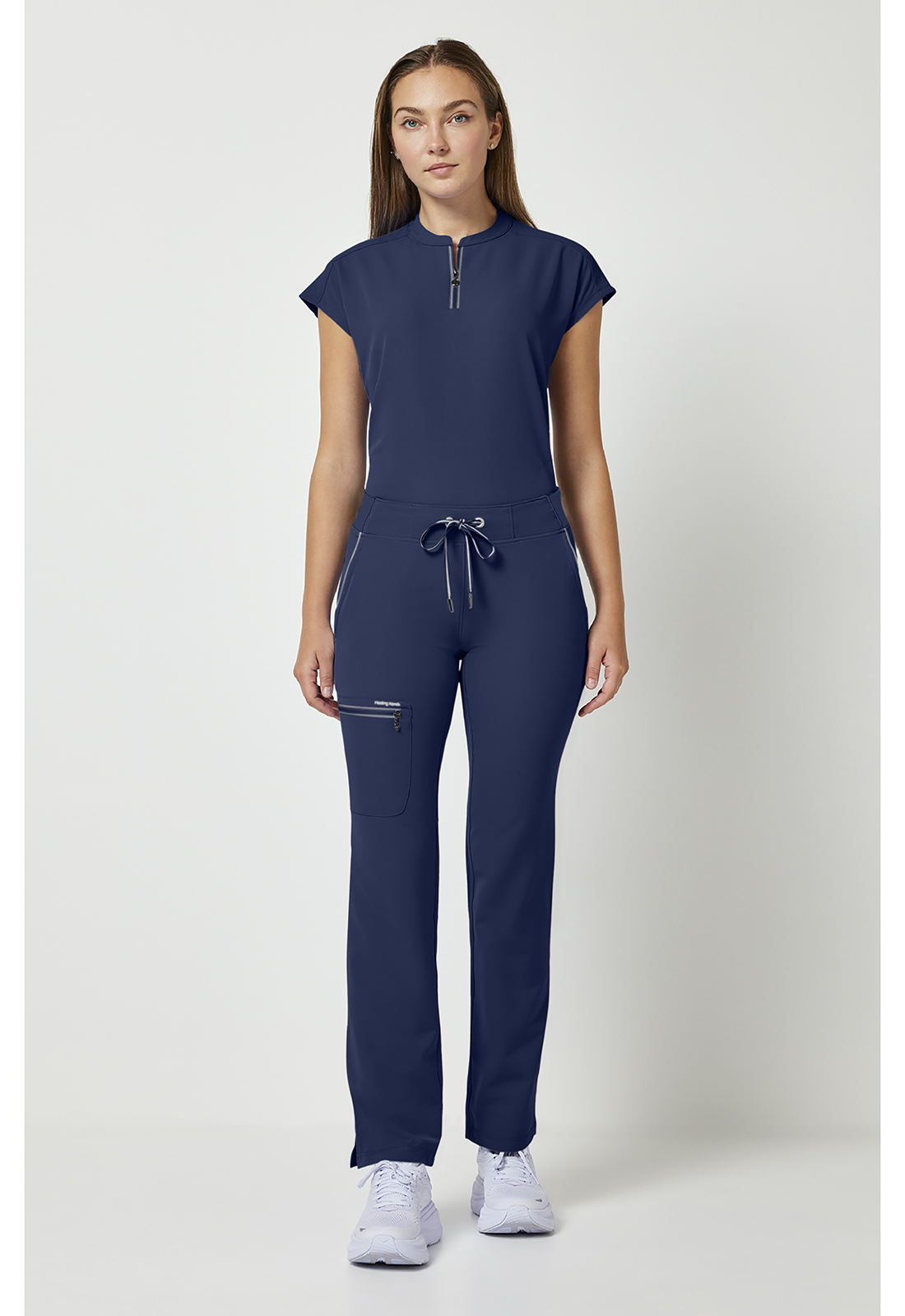 Διαθέτει σύγχρονη γραμμή που αναδεικνύει τη σιλουέτα, προσφέροντας μια επαγγελματική εικόνα που ξεφεύγει από τα παραδοσιακά, φαρδιά ιατρικά παντελόνια. Ενσωματώνει πολλαπλές, στρατηγικά τοποθετημένες τσέπες που επιτρέπουν την εύκολη οργάνωση και μεταφορά ιατρικών εργαλείων, σημειωματάριων και προσωπικών αντικειμένων, εξασφαλίζοντας ότι όλα τα απαραίτητα είναι άμεσα προσβάσιμα. Η κατασκευή του είναι εμπνευσμένη από τα ρούχα υψηλών αθλητικών επιδόσεων, γεγονός που το καθιστά εξαιρετικά ανθεκτικό στις συνεχείς κάμψεις και τις γρήγορες μετακινήσεις εντός των κλινικών χώρων. Η ζώνη του παντελονιού είναι σχεδιασμένη να παραμένει σταθερή στη θέση της, προσφέροντας σιγουριά και άνεση χωρίς να πιέζει την περιοχή της κοιλιάς.