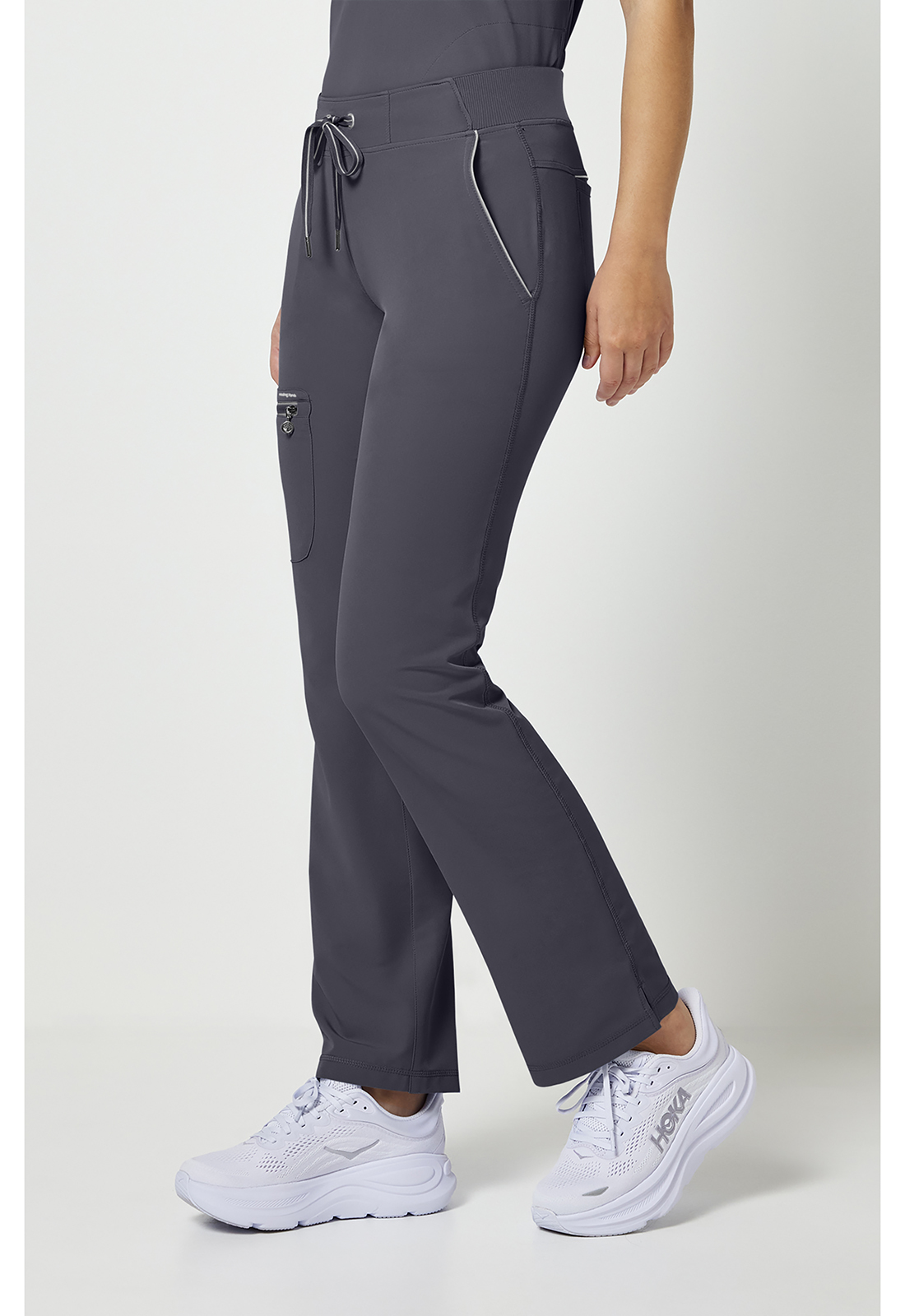 Διαθέτει σύγχρονη γραμμή που αναδεικνύει τη σιλουέτα, προσφέροντας μια επαγγελματική εικόνα που ξεφεύγει από τα παραδοσιακά, φαρδιά ιατρικά παντελόνια. Ενσωματώνει πολλαπλές, στρατηγικά τοποθετημένες τσέπες που επιτρέπουν την εύκολη οργάνωση και μεταφορά ιατρικών εργαλείων, σημειωματάριων και προσωπικών αντικειμένων, εξασφαλίζοντας ότι όλα τα απαραίτητα είναι άμεσα προσβάσιμα. Η κατασκευή του είναι εμπνευσμένη από τα ρούχα υψηλών αθλητικών επιδόσεων, γεγονός που το καθιστά εξαιρετικά ανθεκτικό στις συνεχείς κάμψεις και τις γρήγορες μετακινήσεις εντός των κλινικών χώρων. Η ζώνη του παντελονιού είναι σχεδιασμένη να παραμένει σταθερή στη θέση της, προσφέροντας σιγουριά και άνεση χωρίς να πιέζει την περιοχή της κοιλιάς.