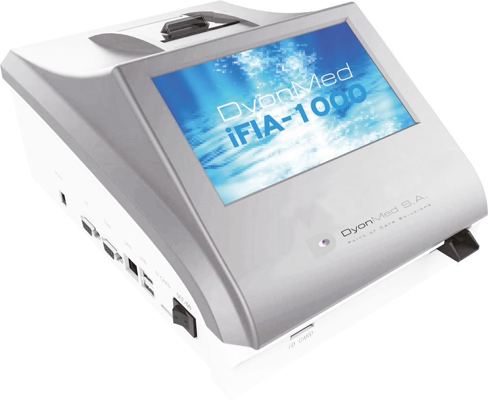 Η DyonMed πρωτοπορεί εισάγοντας στην ελληνική αγορά τον DyonMed iFIA-1000® POCT Analyzer, τον πρώτο φορητό αυτόνομο αναλυτή POCT (Point-of-Care Testing), ο οποίος είναι ικανός να προσδιορίσει ποσοτικά έως και 36 βιοδείκτες! Το iFIA-1000® αποτελεί ένα σημαντικό διαγνωστικό εργαλείο, φέρνοντας την ακρίβεια των εργαστηριακών αναλύσεων άμεσα, δίπλα στον ασθενή. Ο αναλυτής λειτουργεί με την τεχνολογία Immunoassay (IFIA) και εγγυάται αποτελέσματα σε λιγότερο από 15 λεπτά, γεγονός που τον καθιστά ιδανικό για την ταχεία διαχείριση και διάγνωση όλο το 24ωρο.