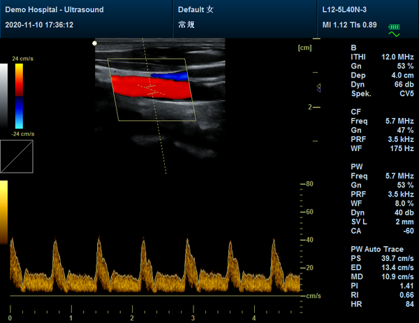 - Πλήρεις Λειτουργίες Doppler: Περιλαμβάνει όλες τις βασικές λειτουργίες Doppler: Έγχρωμο Doppler (CF), Εικόνα Ισχύος Doppler (PDI), Φασματικό Doppler Παλμών (PW) και Φασματικό Doppler Συνεχούς Κύματος (CW). Αυτό το πλήρες πακέτο εξασφαλίζει ακριβή μελέτη της ροής του αίματος.